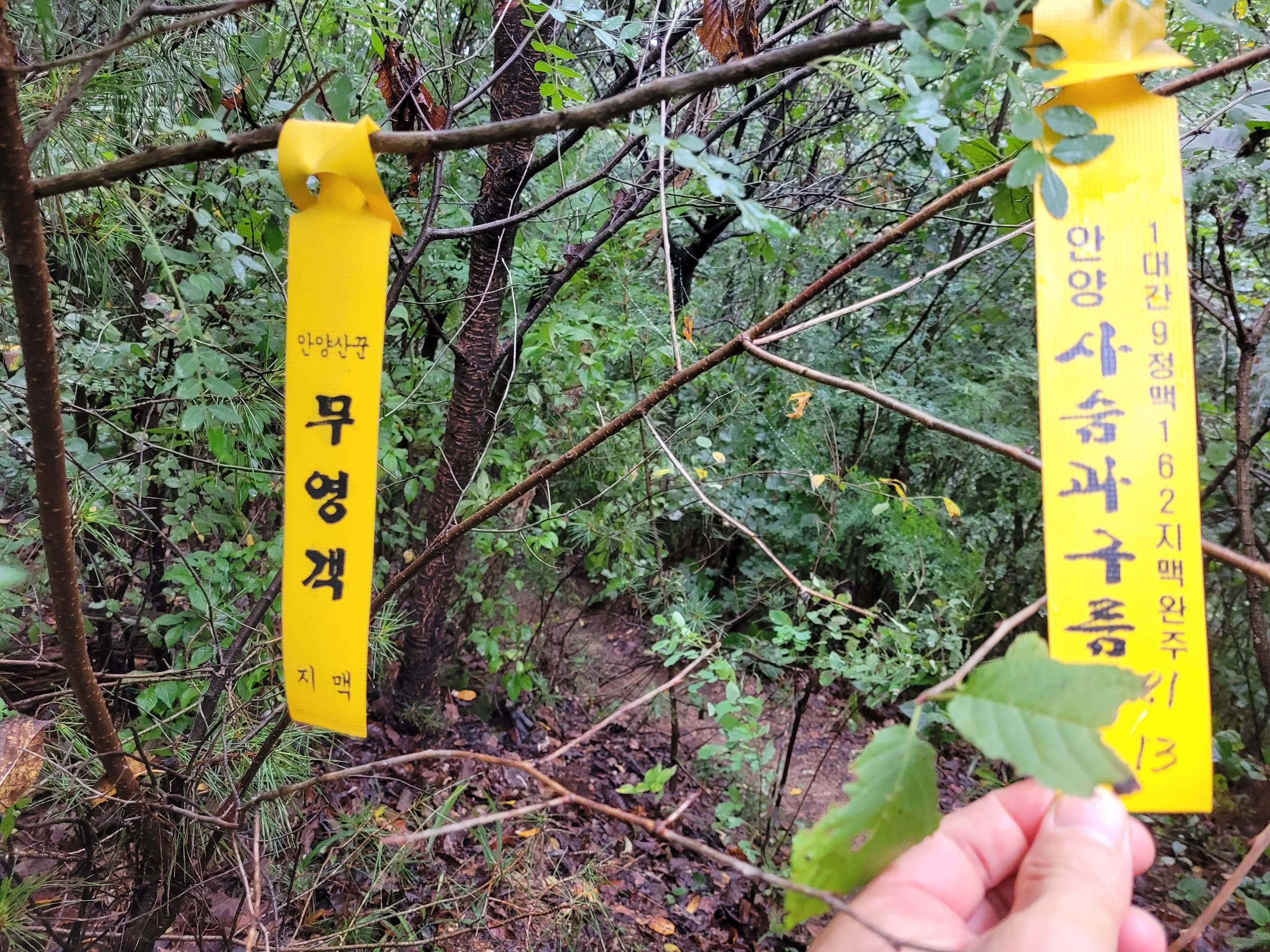 1.축석령휴게소에 파킹하고 한북정맥 상의 축석교회 계단을 올라 지맥분기점까지 접속한다. 지맥분기점인 좌측 박석고개 가는길에서 한북정맥을 끝으로 왕방지맥은 우측인 북서쪽으로 향한다. 아직 해가 뜨지 않은 상태이지만 흐리다는 것을 알 수 있었고 산행 시작부터 간간히 빗방울이 떨어지기 시작한다. 한 여름에 비하면 비교적 선선한 가운데 도심의 지맥길이다 보니 등산로가 반질반질하게 좋다.