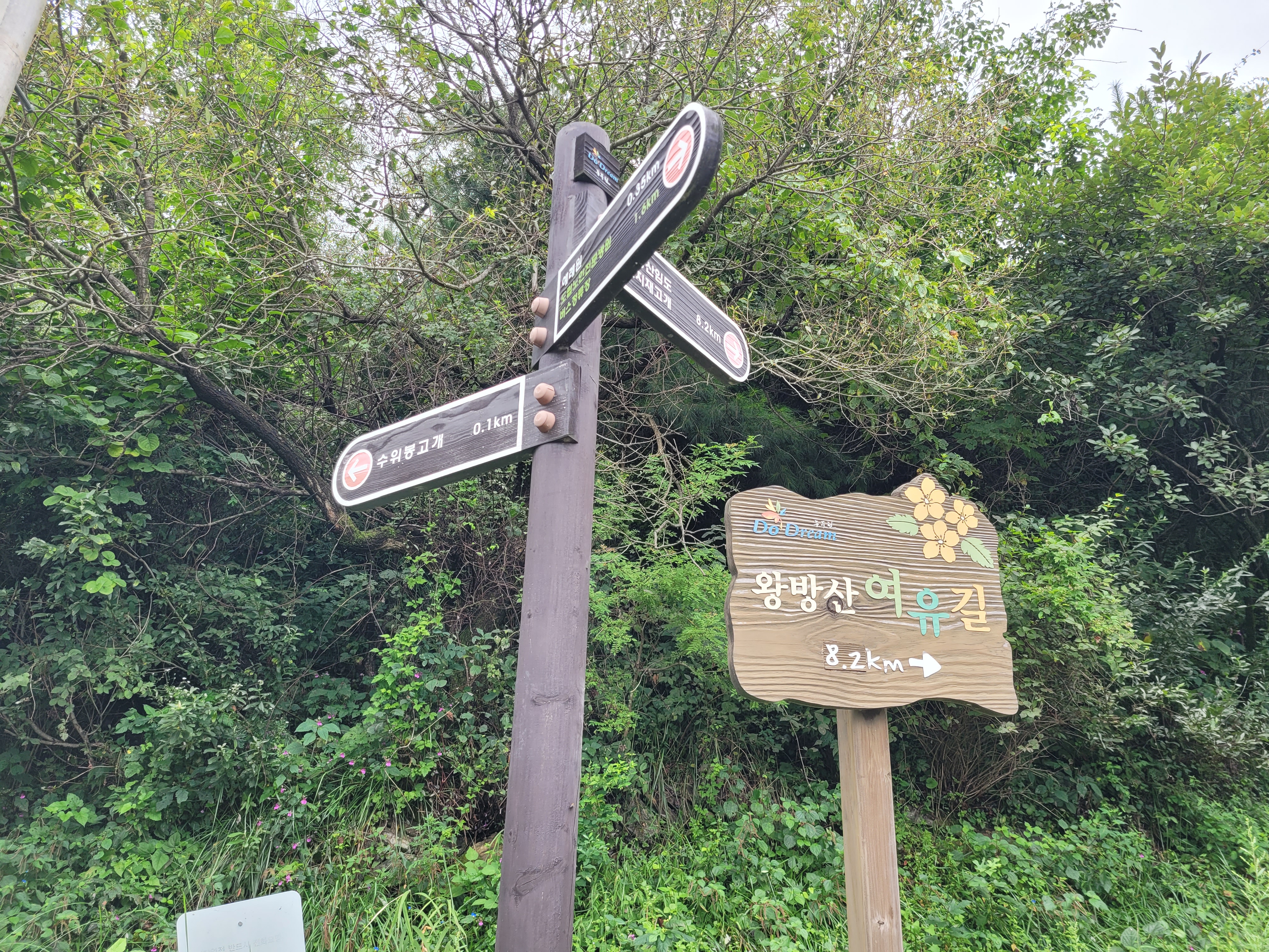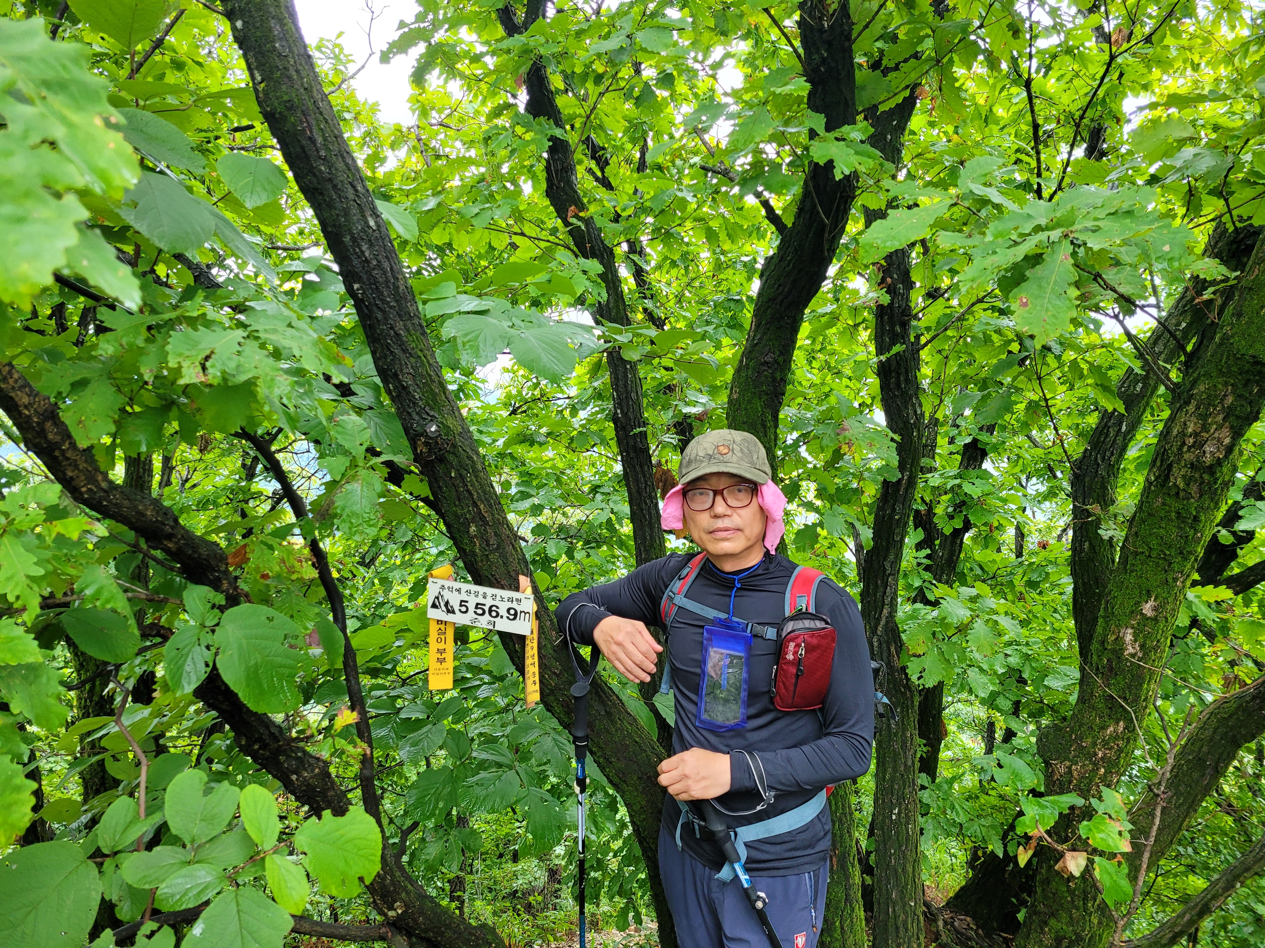 4.해룡산과 왕방산 그리고 국사봉을 오를 때는 습한데다 가팔라서 숨이 턱 막혀 힘겨웠고 군부대로 인해 철책 아래 언덕배기에 왕수산악회에서 세워놓은 정상석이 놓여져 있다.