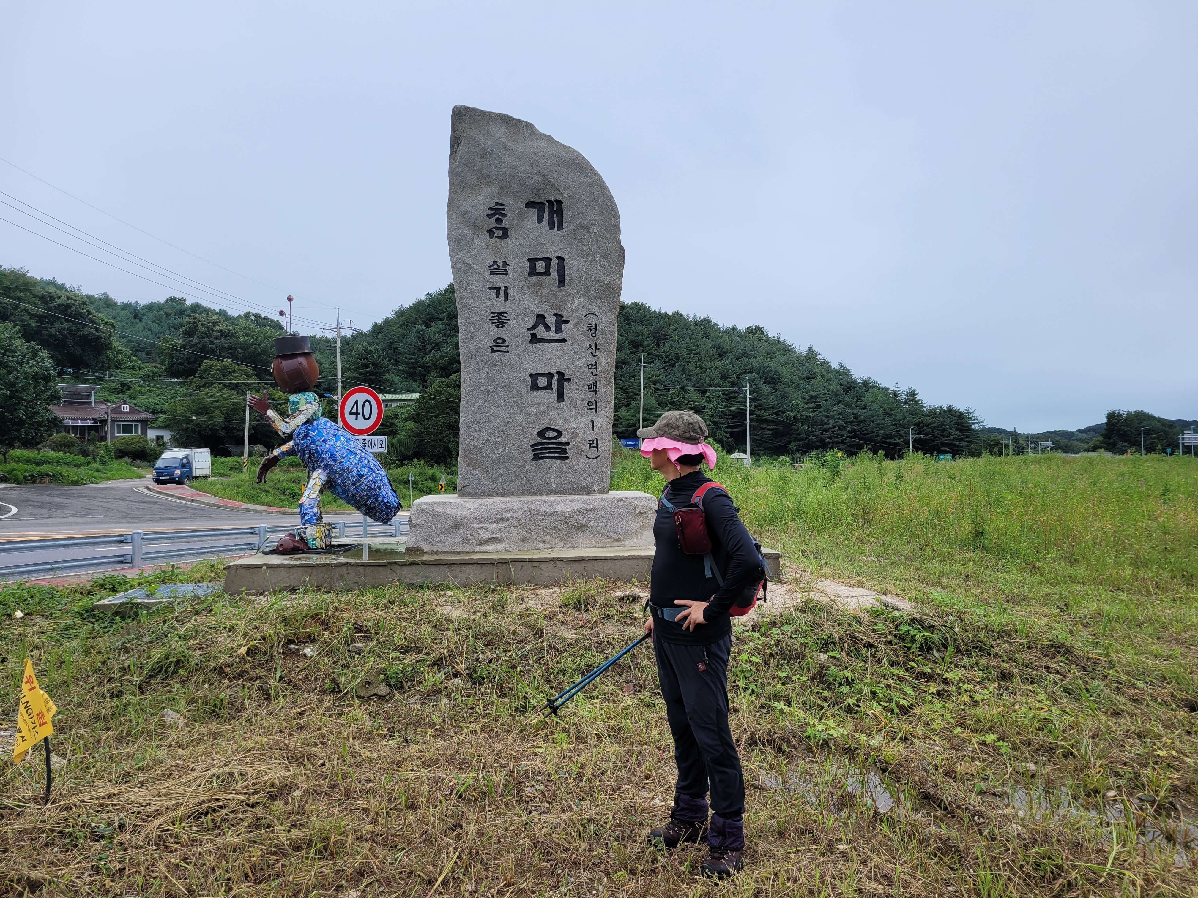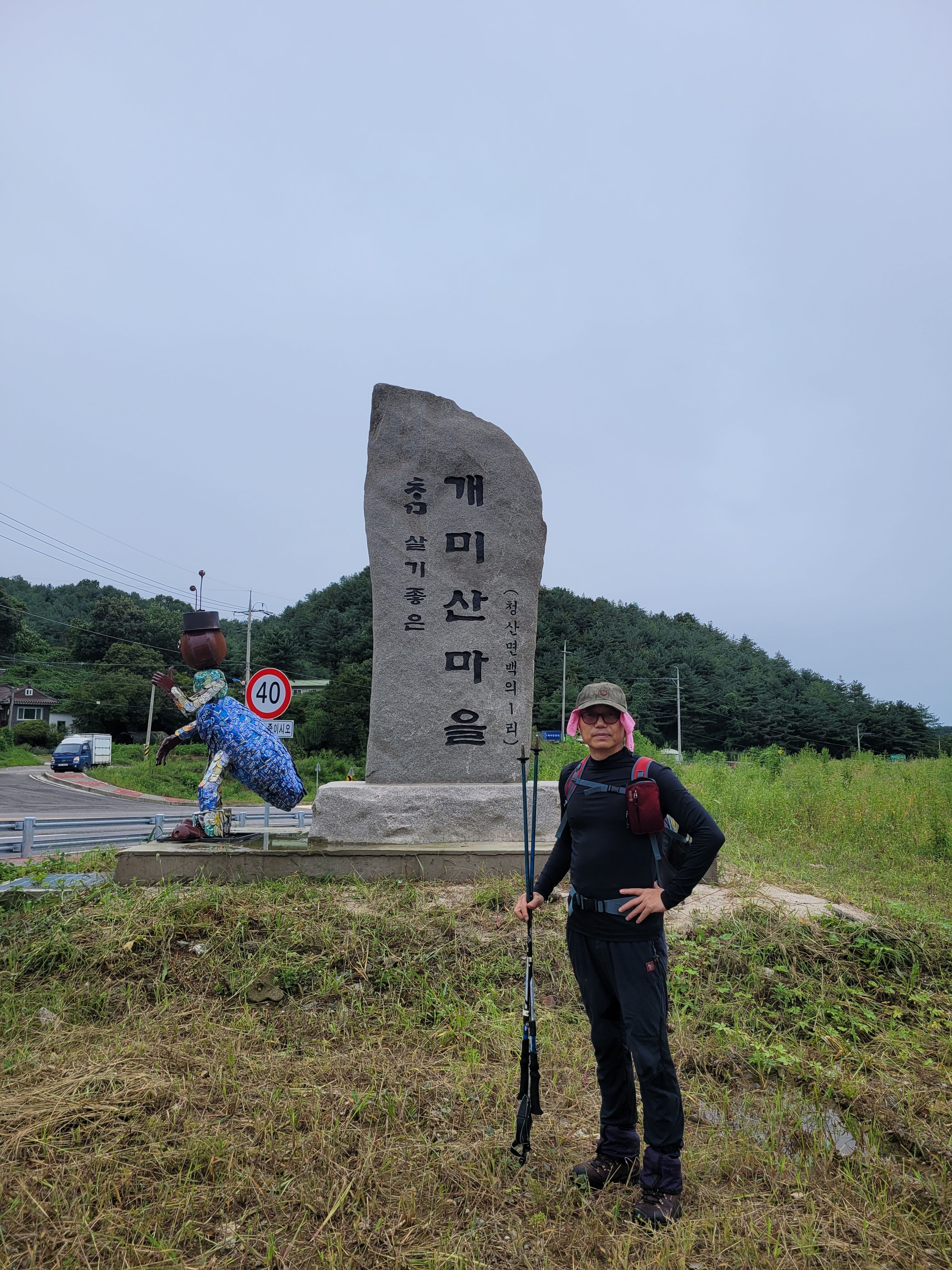 1.지난 1구간은 8월 삼복더위에 30km이상을 진행한 터라 나머지 1/3만 하면 완주하게 된다. 새벽까지 억수같은 빗소리에 마음 조렸지만 칠월리 청산고개쉼터인 들머리에 도착했을 때는 감쪽같이 개었다. 시작할 때 비 님만 안 오신다면 산행 중 비는 개의찮으니 걱정거리는 덜었다. 들꽃이 반겨주고 풀잎에 맺힌 이슬방울이 떨어질 듯 말 듯 실바람에 흔들거린다.